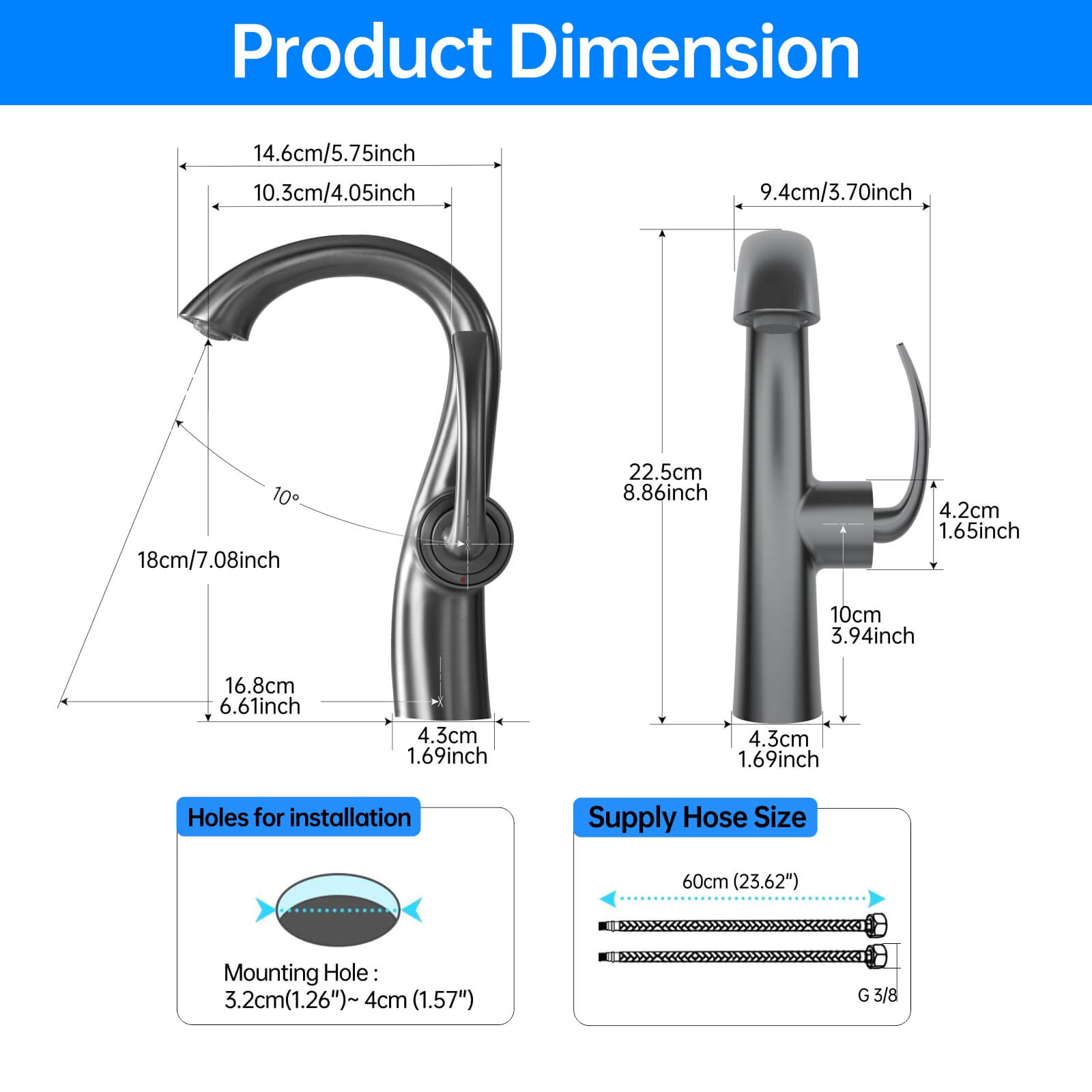 - Supply Hose Length: 60 cm