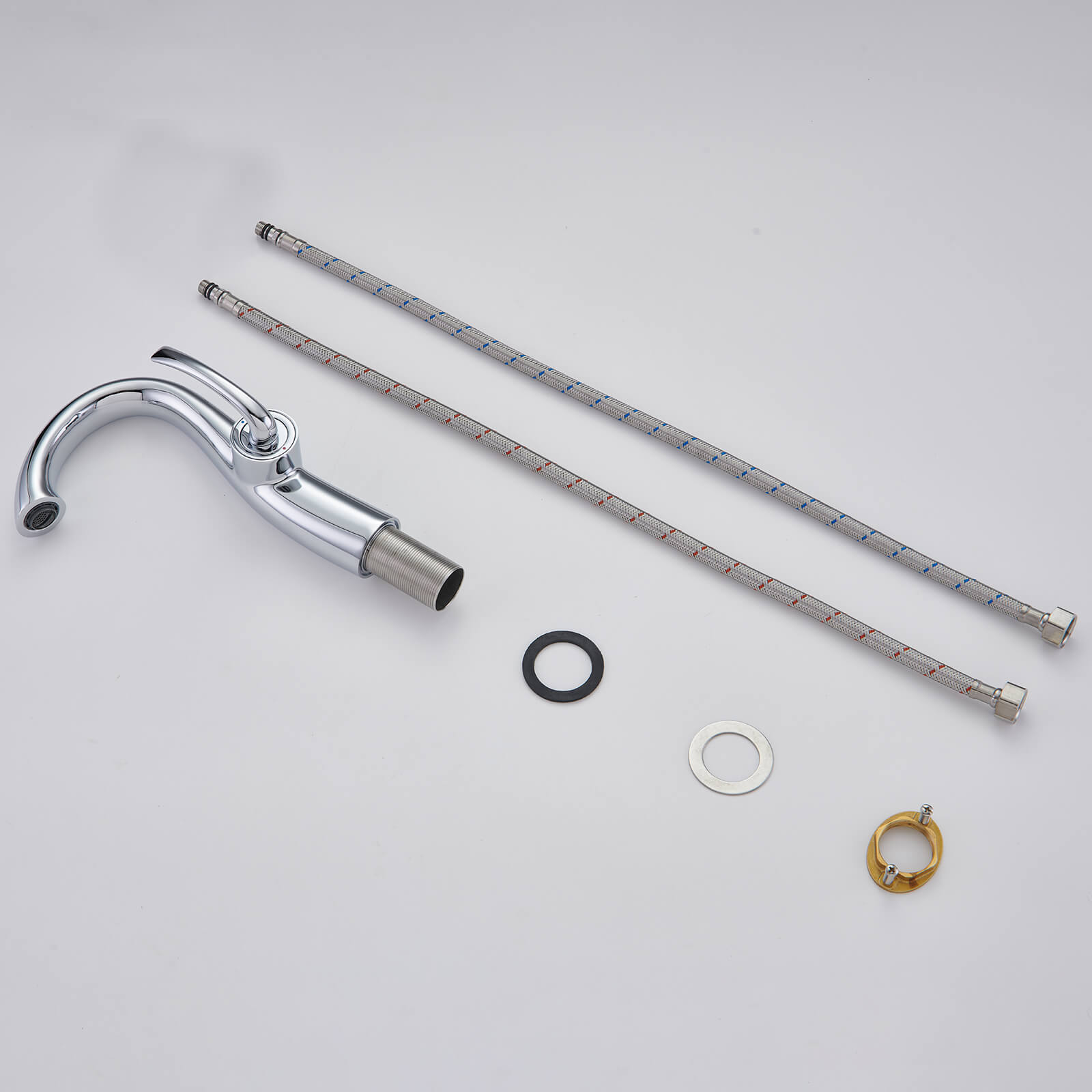 1 × Basin Faucet, 2 × 60 cm Supply Hoses, 1 × Installation Kit