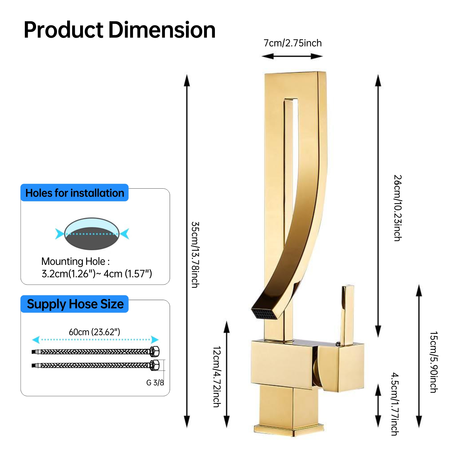 Premium Modern Gold Waterfall Single-Hole Faucet