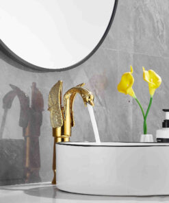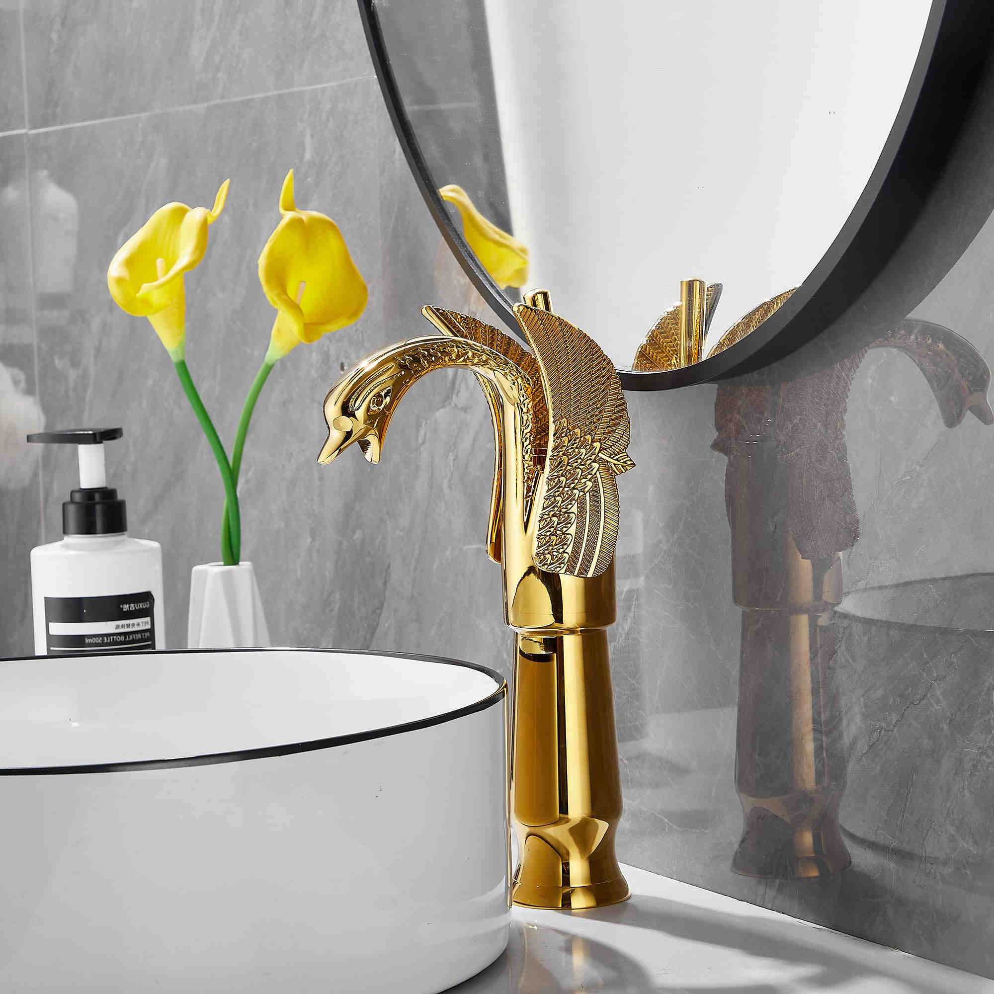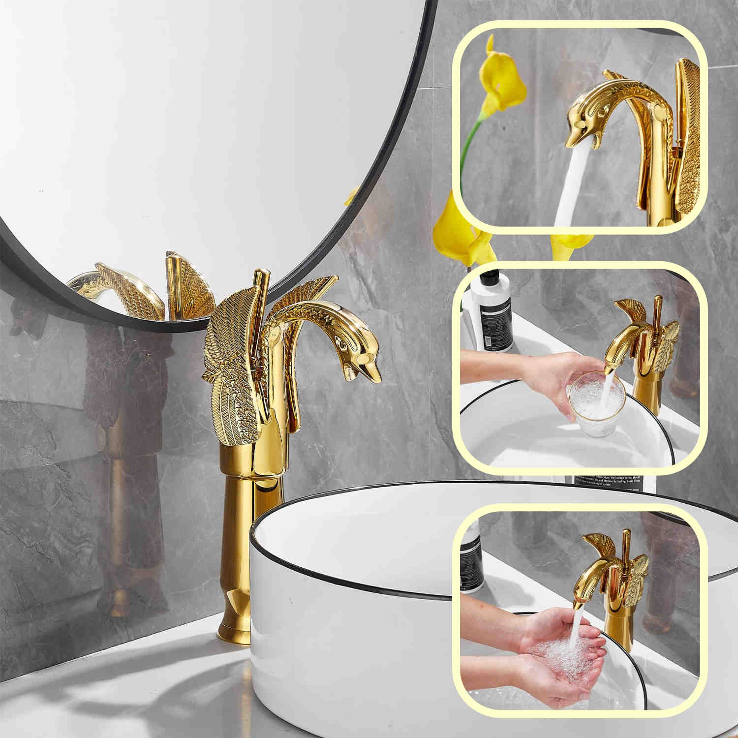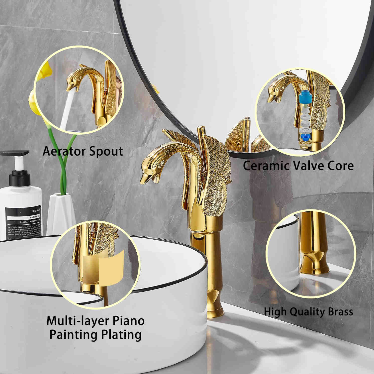Titanium Bathroom Vessel Sink Faucet Gold Swan Single Handle One Hole Tall Bathroom Faucet For Bowl Sink Faucet Deck Mount Lavatory Sink Faucet