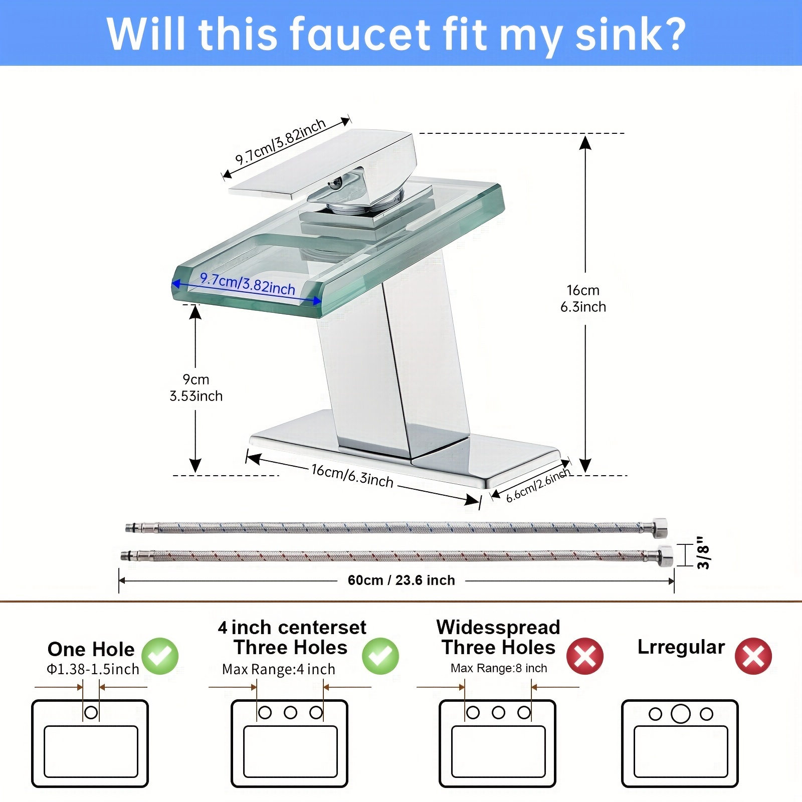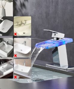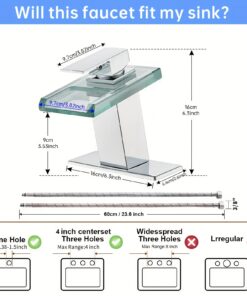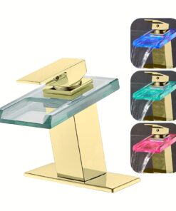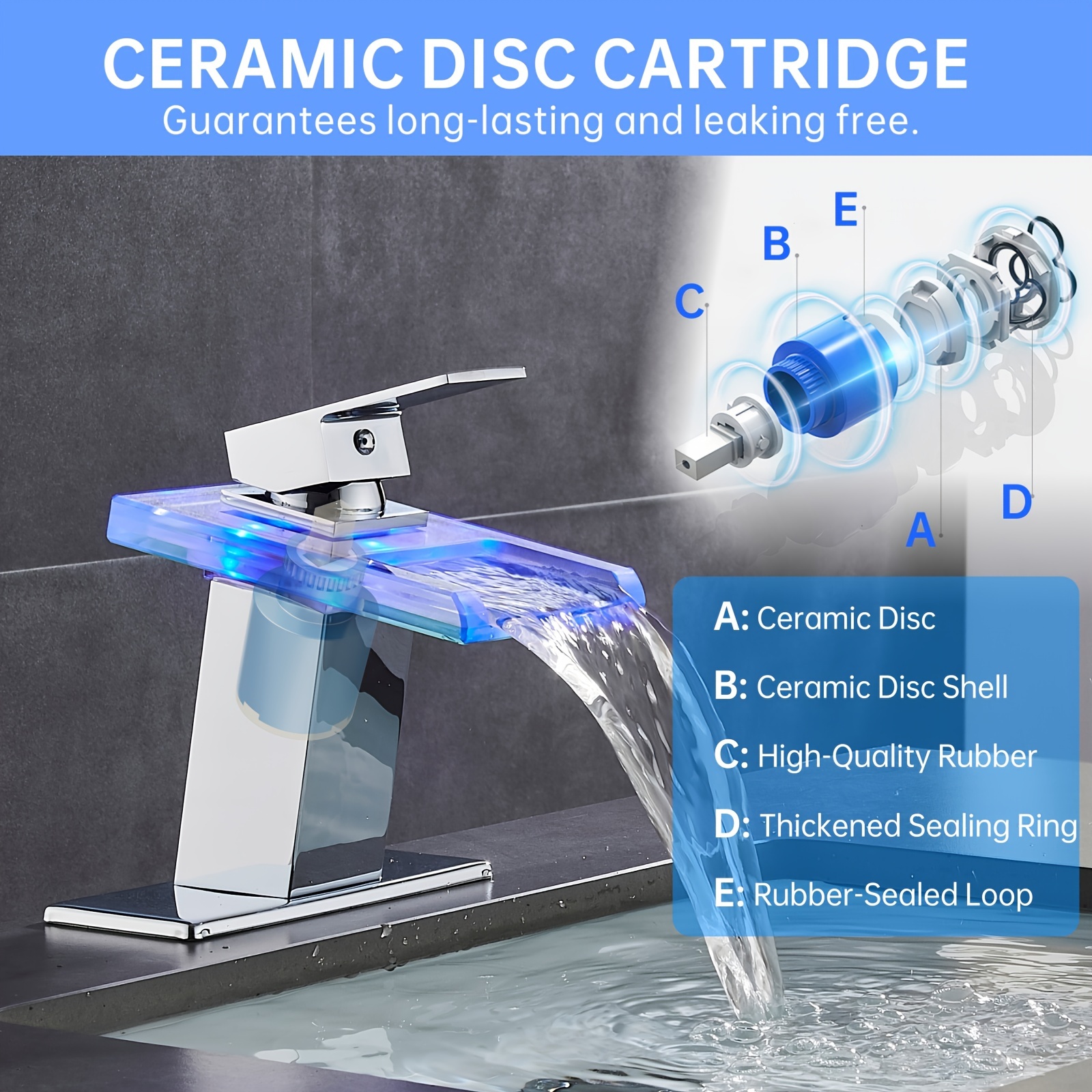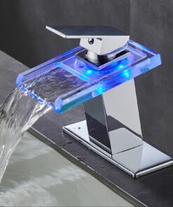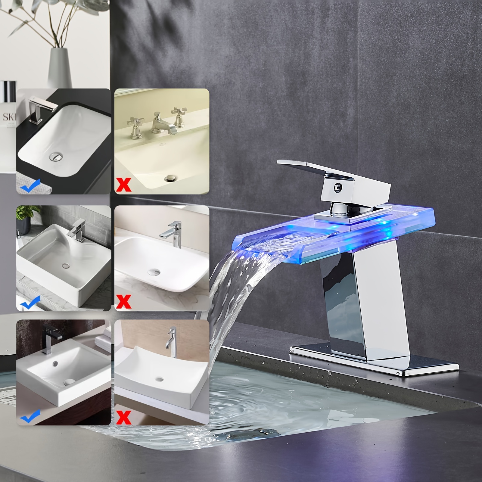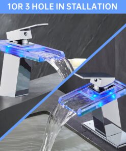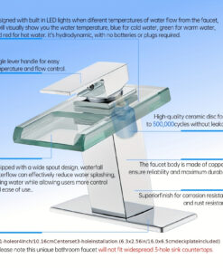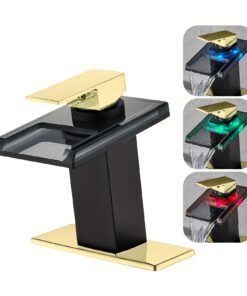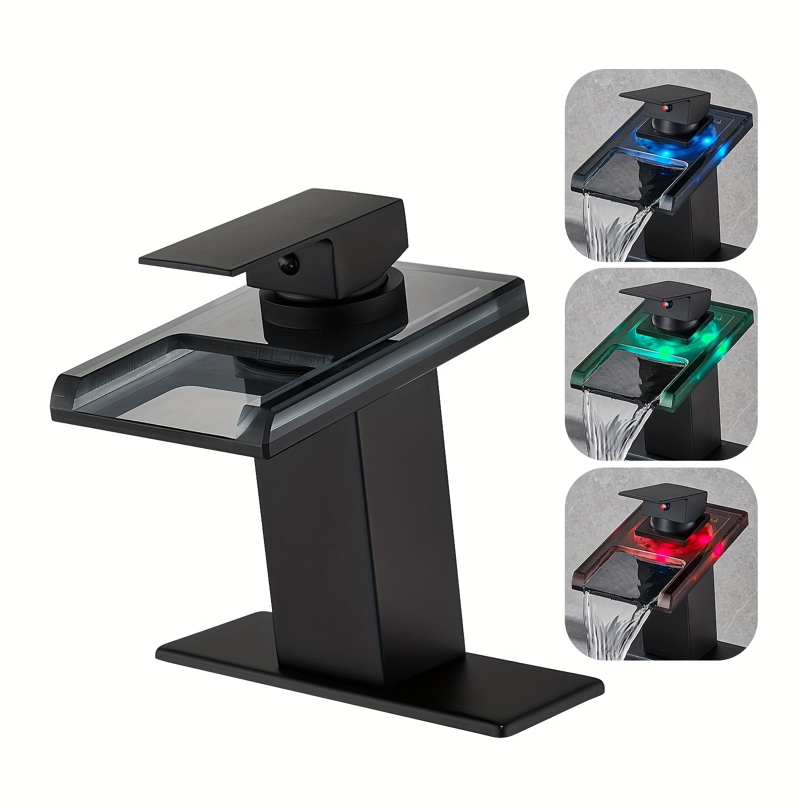 Matte Black Waterfall LED Bathroom Sink Faucet with Deck Plate, Single Handle Vanity Faucet for 3-Hole Sinks